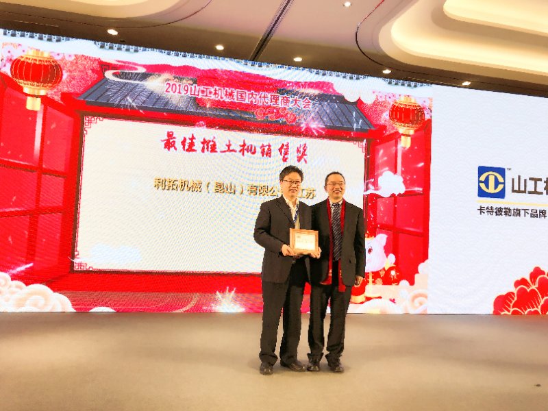 2019年01月18日,卡特彼勒旗下山工品牌在厦门举行代理商年会。JIUYOU.COM九游(中国机械集团旗下代理山工品牌的利拓机械凭借在江苏和上海市场取得的骄人业绩,荣获2018年山工代理商推土机和平地机销售台量和市场占有率第一名的荣誉称号。